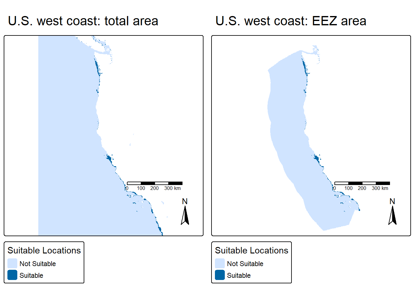 tmap_arrange(map_suitable, map_suitable_eez, nrow = 1)