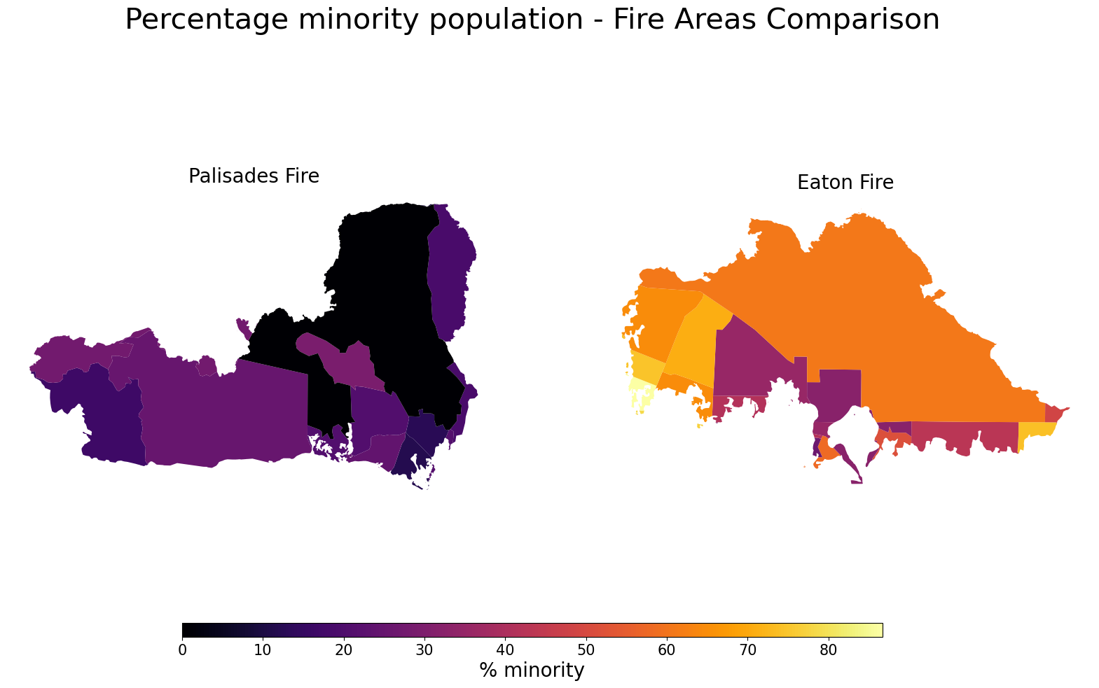 - Map census tracts that intersect the Eaton and Palisades fires to explore potential injustices.