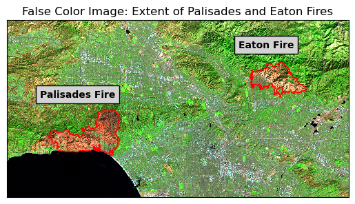 ax.set_title("False Color Image: Extent of Palisades and Eaton Fires")
