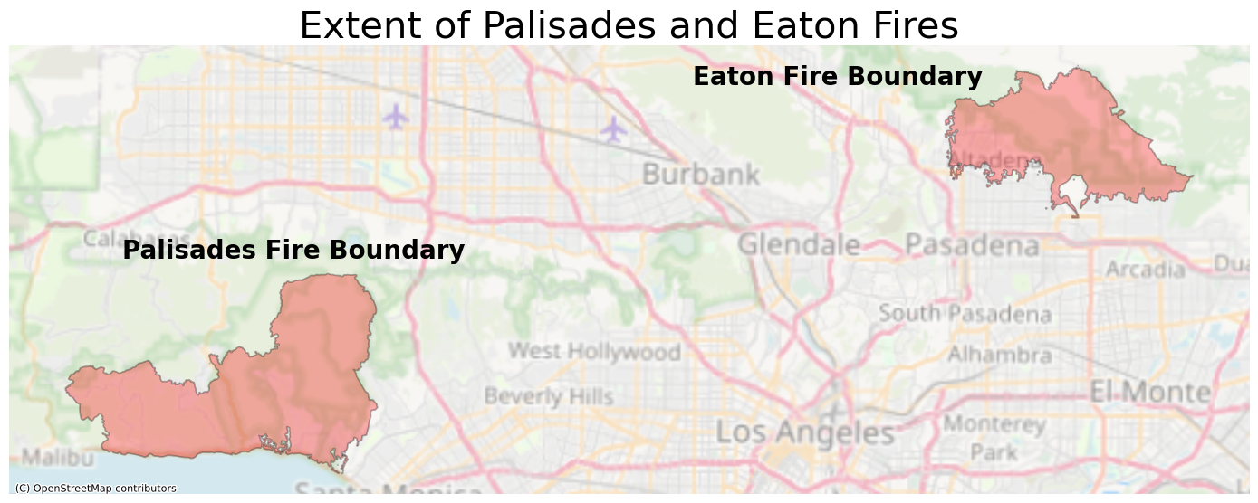 from matplotlib_scalebar.scalebar import ScaleBarExploring the extent and impact of the Eaton and Palisades fires in Los Angeles County